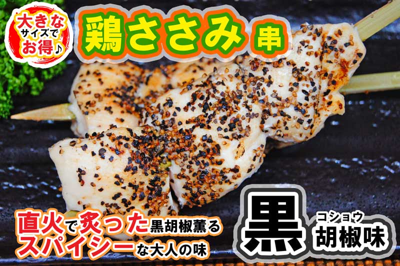 大串の「鶏ささみ黒胡椒2本(640円相当)」に